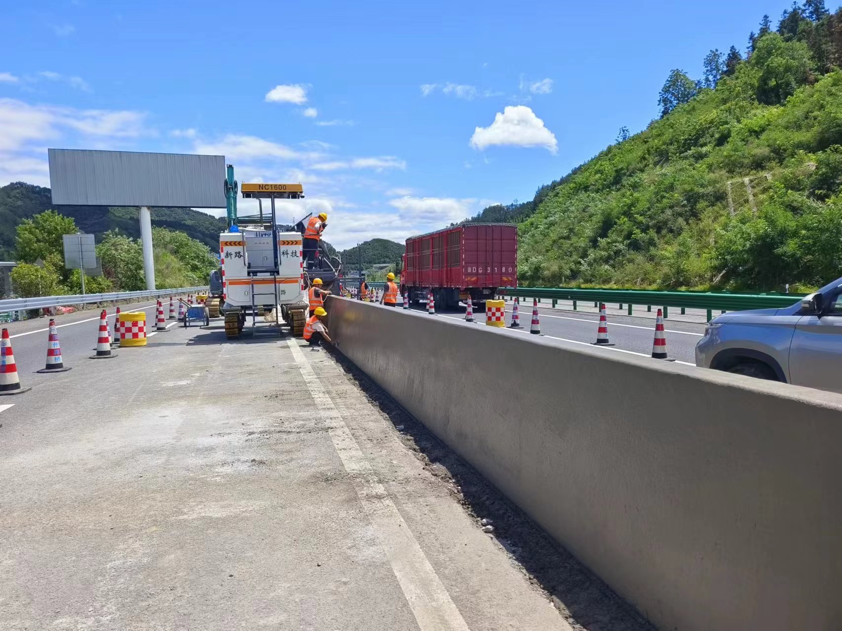 NC1800混凝土滑模攤鋪機(jī)-關(guān)東中山防撞護(hù)欄滑模施工